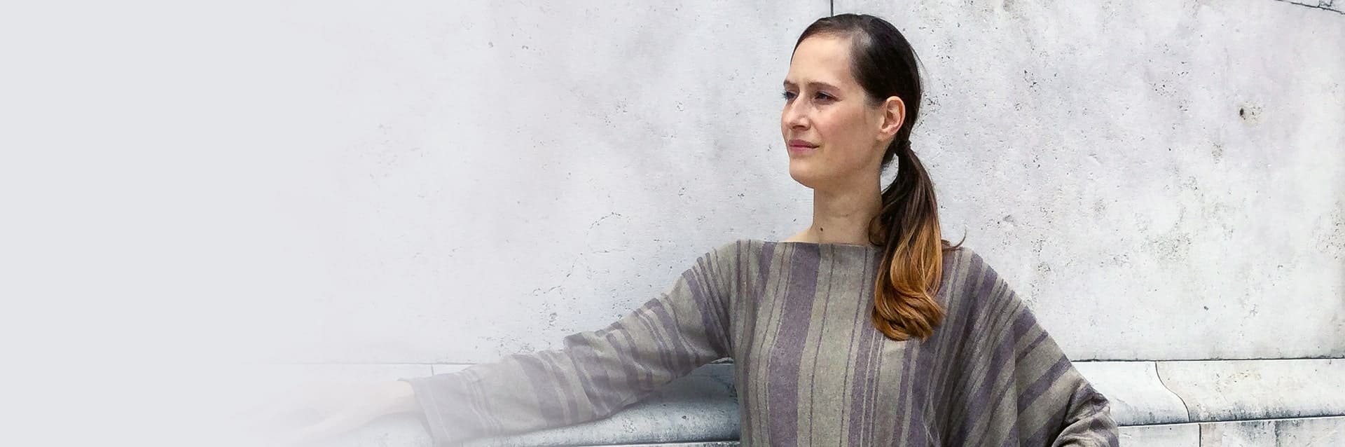Es folgte „Das Spiel mit der Funktion“, denn als die Designerin KapuzenSchal, EIN LochSchal, SchlaufenSchal, … entwarf, war dies in der aufwendigen Filztechnik nicht mehr möglich und auch nicht sinnvoll. Sie fertigte die Modelle in Strick aus öko-zertifizierter, extrafeiner, melierter Merinowolle und legte dieselben Qualitätskriterien wie bei den Seidenschals an: Beide Seiten gleich schön. Beide Seiten in verschiedener Optik. Kein unifarbenes Material. Dadurch erreichte sie, dass die Modelle reversibel, zur Grundgarderobe besser abgestimmt und durch die Veränderbarkeit und Wandelbarkeit öfters und länger getragen werden. Mit minimalen Eingriffen, wie kurze Nähte, kleine Cut Outs, … entstanden StolaCape, JackenCape, Cape, DreieckPoncho, MantelCape, Pullover, Kleider.