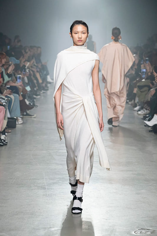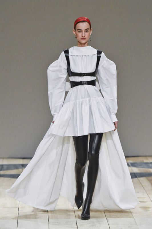 Entsprechend der Zeitstimmung sind die Formen entspannt und schützend und die Schnitte unstrukturiert und großzügig, damit wir uns „einhüllen“ können. Im Gegensatz dazu führen innovative neue Materialien oder der Wunsch, Stärke zu zeigen, zu kühnen skulpturalen Formen, die mit einer Erweiterung des Körpers spielen.